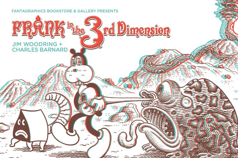Frank In The 3rd Dimension is a series of Jim Woodring’s loveliest pictures — 32 anecdotal visual vignettes, dioramas, moments pickled in time — as you’ve never seen Frank before: in 3D, about as real as you can get him outside of an Ionescoian theatrical performance (which could be next — watch your local theater listings). Frank and Frank’s world are already hallucinatory, but seeing him in the most technologically advanced and artistically crafted 3D ever produced—more than 150 layers per drawing to round and “sculpt” each image into full, volumetric 3D — is an experience that has to be savored to be believed. Packaged with 3D glasses designed by Woodring himself, this new printing brings one of our most requested titles back into print again.