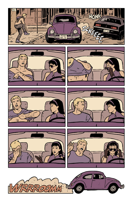 Until MPH by Mark Millar and Duncan Fegredo this week, HAWKEYE VOL 1 was the only superhero comic we have ever allowed in the Page 45 window, and the only superhero comic we have ever made or are likely to make Page 45 Comicbook Of The Month. Firstly, David Ajas design skills are phenomenal; secondly, this isnt a superhero comic: its a grin-inducingly inventive comedy crime caper, full of humanity and accessible to all: you dont need to have read a single Marvel Comic in your life.