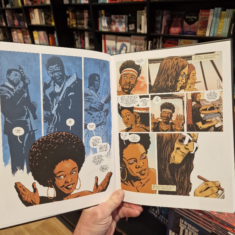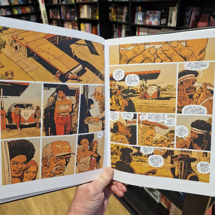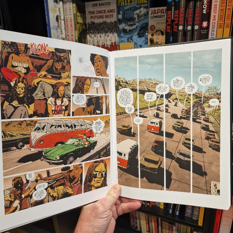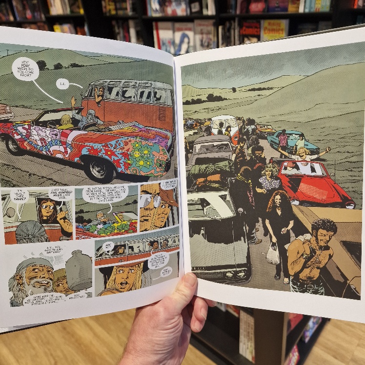 Spectacular! Festival fans, you are in for an era-soaked eye-popper as Charlie Adlard (WALKING DEAD, DAMN THEM ALL etc) delivers the most elevated and so evidently inspired art of his career. The toning techique is so very apposite, in perfect harmony with the richest colours, redolent of a baking hot summer and the high expectations of those on the road in search of cameraderie and musical bliss.