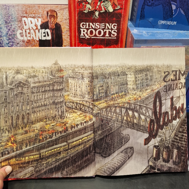 Belgian creator Joris Mertens nails the blind spots and squeeze of rammed rush-hour traffic like Posy Simmonds so successfully gave us the Chistmas-shopping scrum in CASSANDRA DARKE. And its these tightly packed, barely budging yet suddenly shifting lanes of fuming heavy metal which Francois must negotiate every morning to ensure that Madame Clerckxs clients receive their laundry, clean and fresh. So the tension is taut from the second poor Francois has forced upon him Madame Clerckxs dopey nephew as van driver, for you just know he has blind spots of his own.